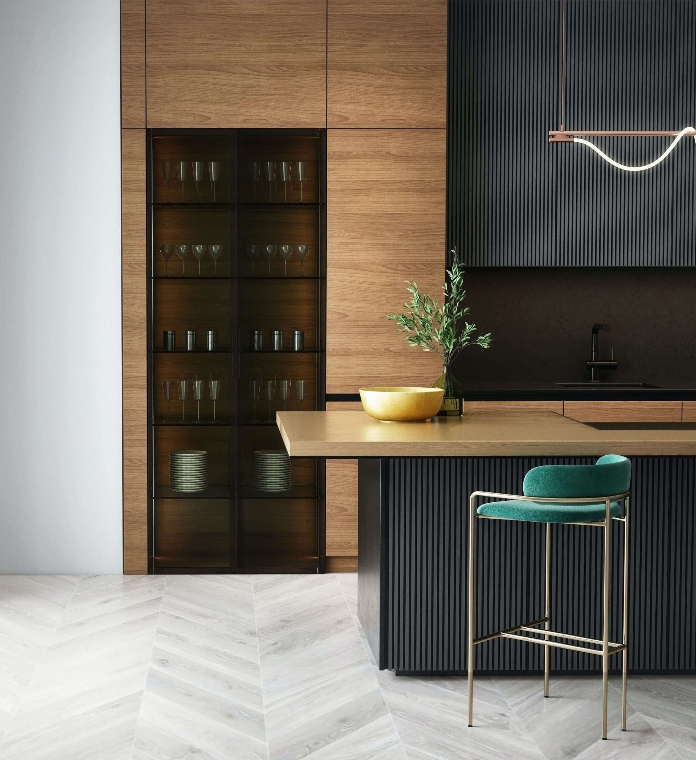 Modern, zeitlos und geradliniges Design entspricht dem Wunsch nach Zeitlosigkeit. Schwarz im Kontrast zu Eichenholz verleiht dem Gesamten Kontur. Ebenso sorgt ein individuelles konzipiertes Beleuchtungssystem zu jeder Zeit für eine helle, freundliche Atmosphäre. Der perfekte Rahmen für ein fröhliches Familienleben.