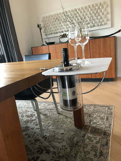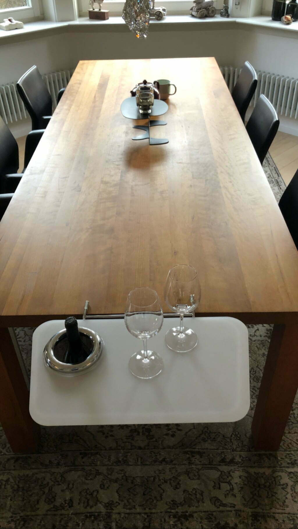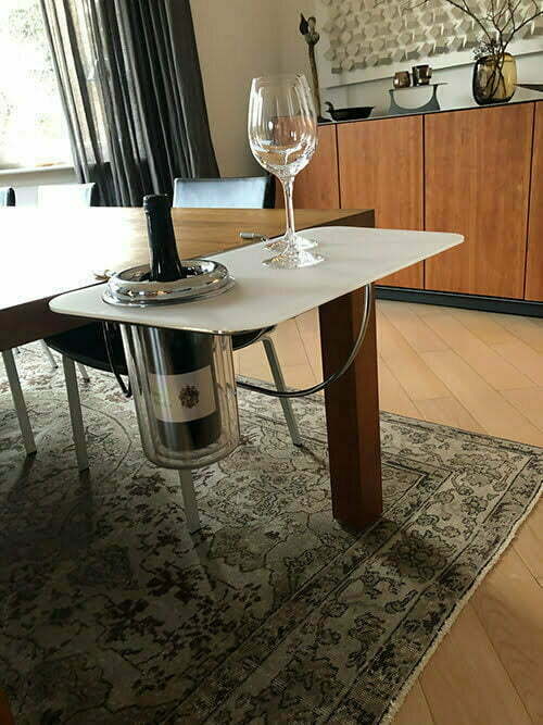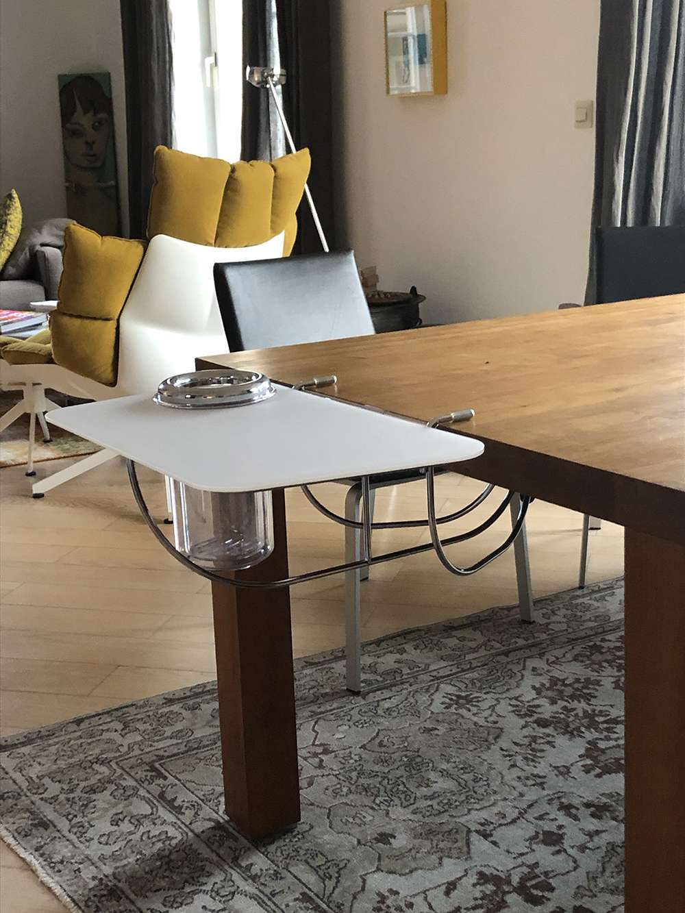 Durch seine schlichte Formgebung lässt sich der Tisch mit verschiedenen Einrichtungsstilen kombinieren. Der Anstecktisch Wunderbar zeichnet sich durch seine Eigenschaft aus, zusätzlichen Platz zu schaffen, genau dann wenn man ihn benötigt. Der Anstecktisch Wunderbar ist ästhetisch und dennoch funktional. Mit dem Flaschenkühler ausgeliefert ist der Tisch auch im Sommer im Outdoorbereich perfekt zu benutzen, denn man kann ihn auch auf einen Terrassentisch stecken. Das Anstecksystem wurde von Platzwert entwickelt, somit ist es auch ein innovativer Tisch.